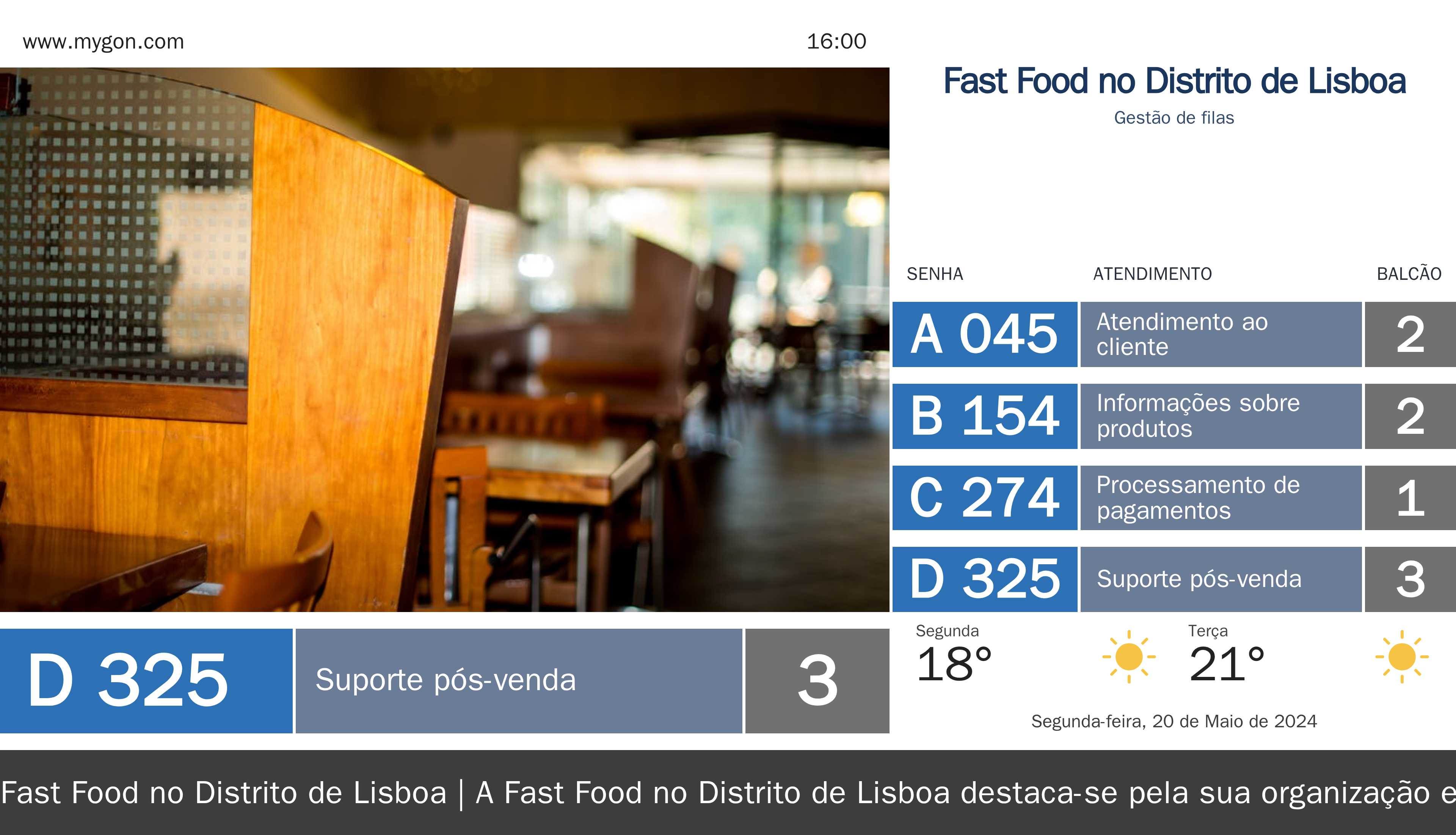 Preparámos exemplos visuais do Q.kiosk e do ecrã/TV que se alinham perfeitamente com a identidade da vossa marca, demonstrando como a implementação da Q.track pode transformar o vosso espaço e atender melhor os vossos clientes.