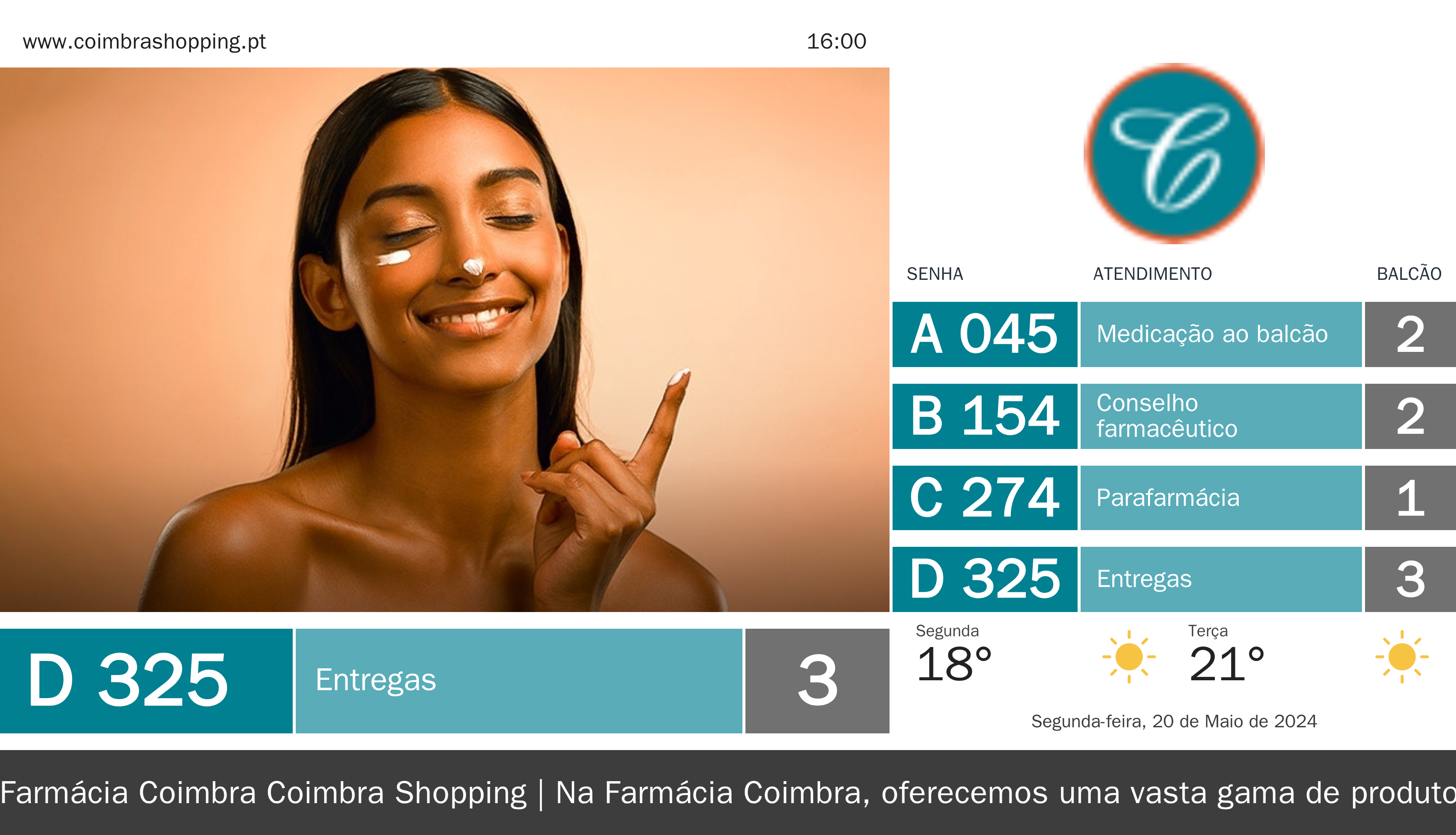 Exemplos visuais preparados para Farmácia Coimbra Coimbra Shopping