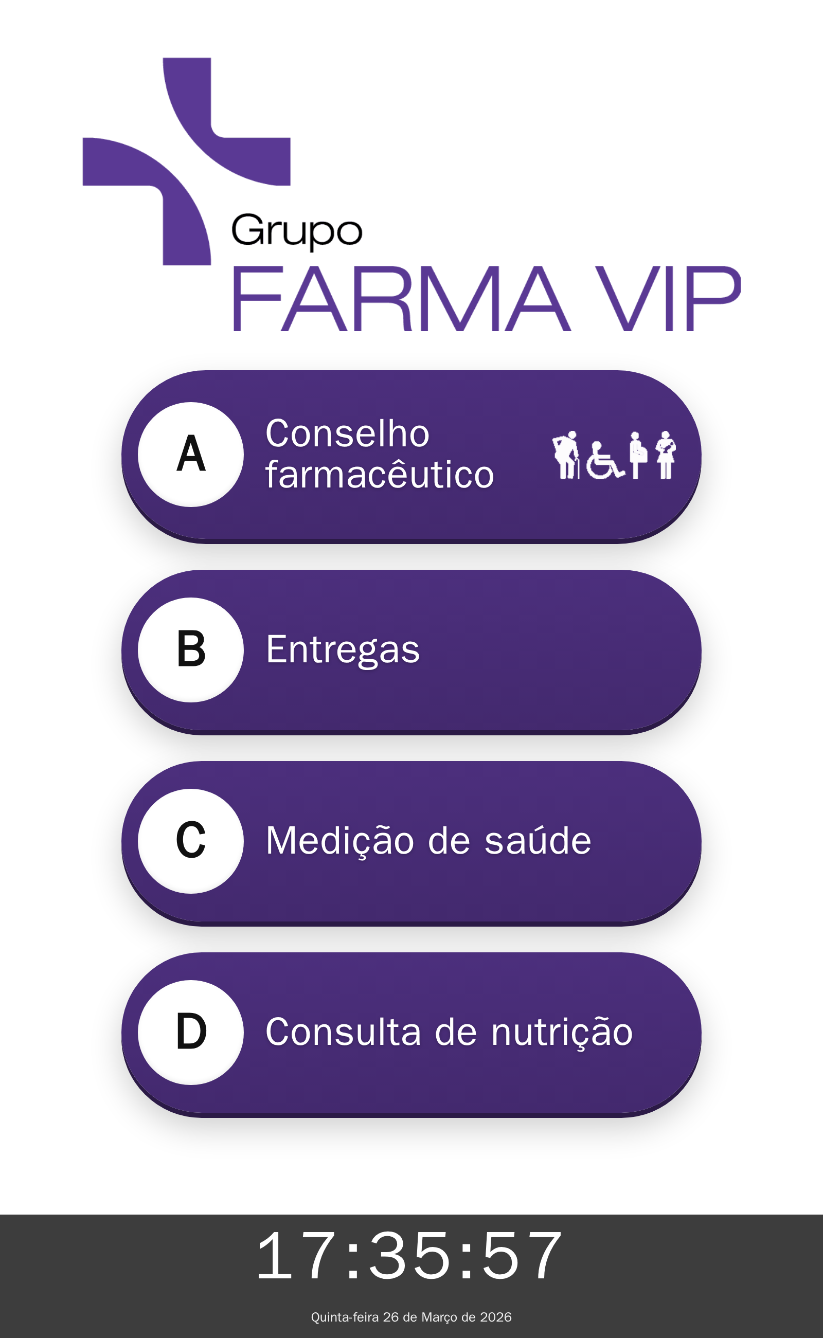 Com a Q.track, é possível alinhar os exemplos visuais, como o Q.kiosk e os ecrãs, à identidade da Farmavip, utilizando as suas cores e logótipos. Esta personalização não só reforça a imagem da marca, mas também melhora a comunicação com os clientes, tornando o seu espaço mais moderno e acessível.